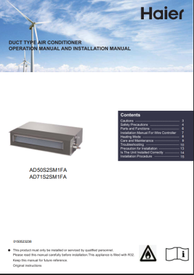 Документы и инструкция к Haier AD71S2LM1FA/1U71S1LR1FA